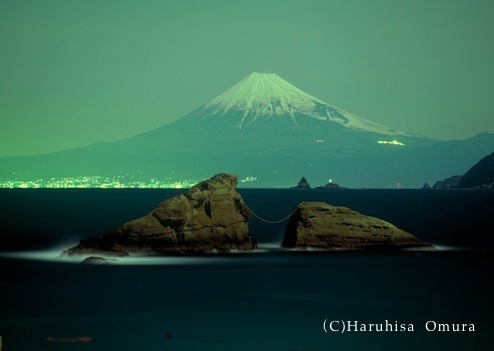 - 月明かりが富士の積雪を浮き上がらせている。思わず鼓動が高ぶる。