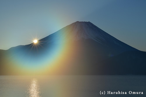アニミズムの象徴・・・ 霊峰から昇る 朝日の光輪